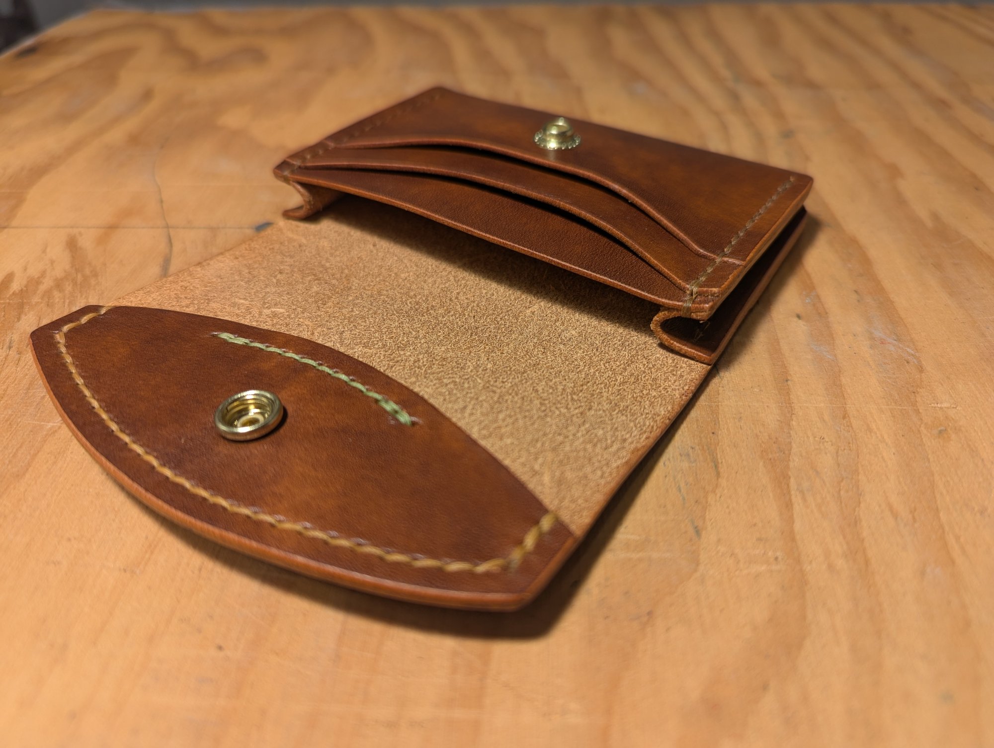 Hand sewn using the timeless saddle stitch. Measures 4.25"w x 3"t x 1.5"-1.75"d. Made to be the last wallet you need.